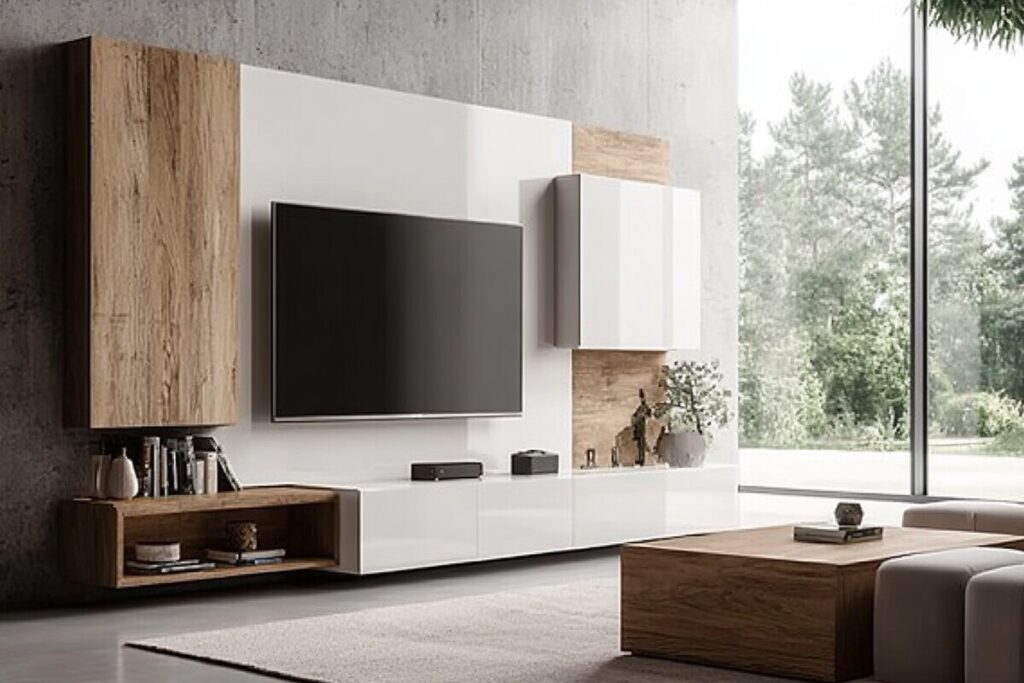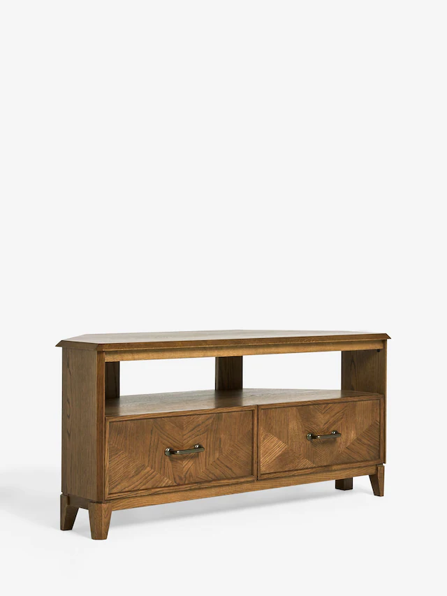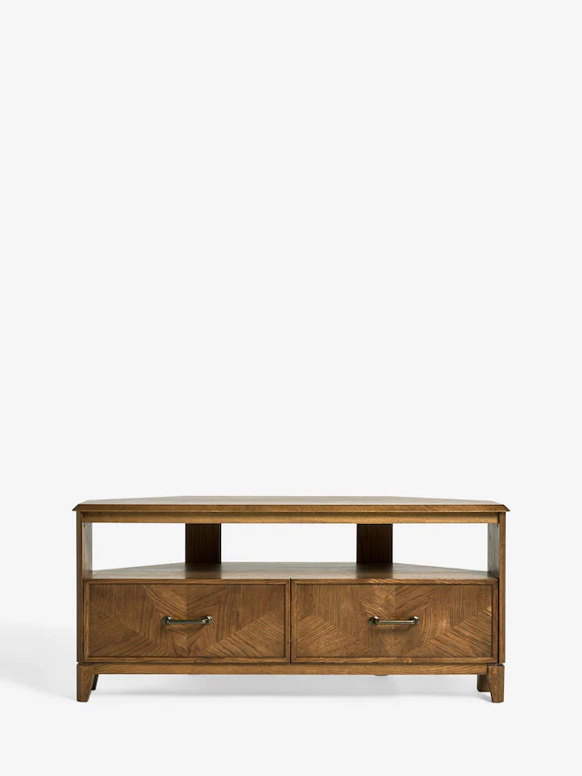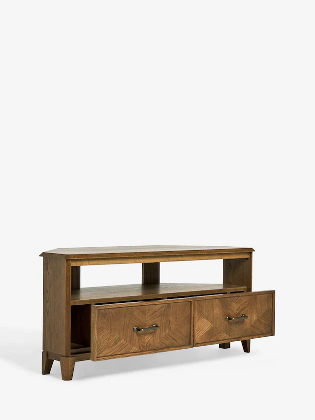 Maximize your living space with this stylish brown wooden corner TV unit. Designed for TVs up to 60 inches, it offers built-in storage for a clean, modern look.