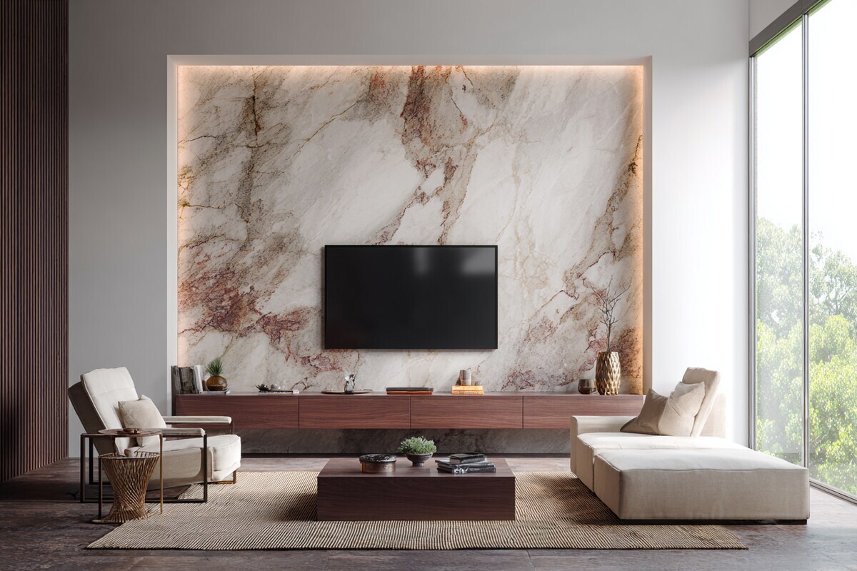 Modern Wall-Mounted TV Unit with Marble Back Panel